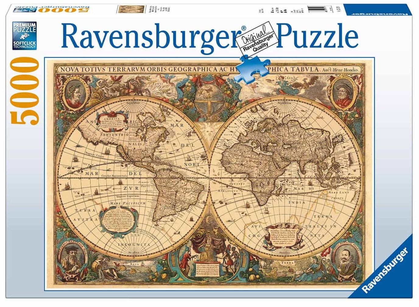 Sprejmite izjemen izziv s 5000-delno sestavljanko, ki prikazuje podroben zgodovinski zemljevid sveta. Vrhunska kakovost Ravensburger s tehnologijo Softclick ustvari impresivno sliko velikosti 153 × 101 cm. Popolno darilo za ljubitelje zgodovine in geografije, starejše od 14 let.