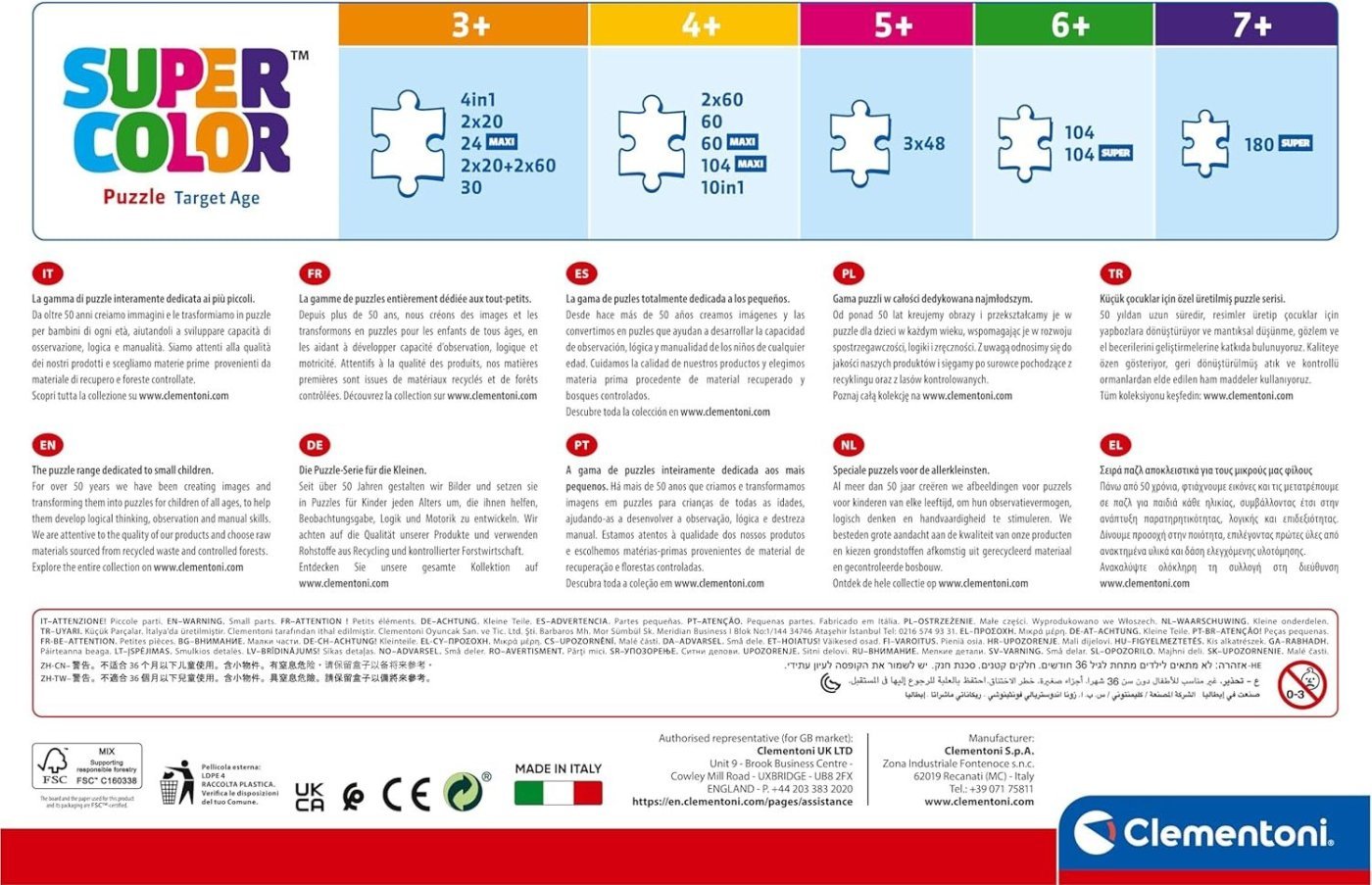 Otroška sestavljanka SuperColor Collection – izdaja, zasnovana posebej za otroke, jim pomaga razvijati ročne spretnosti in sposobnosti opazovanja. Kakovost materialov in ekskluzivna tehnika tiskanja zagotavljata vedno lepe, žive in živahne barve. Velikost sestavljene sestavljanke je približno 62 × 42 cm.