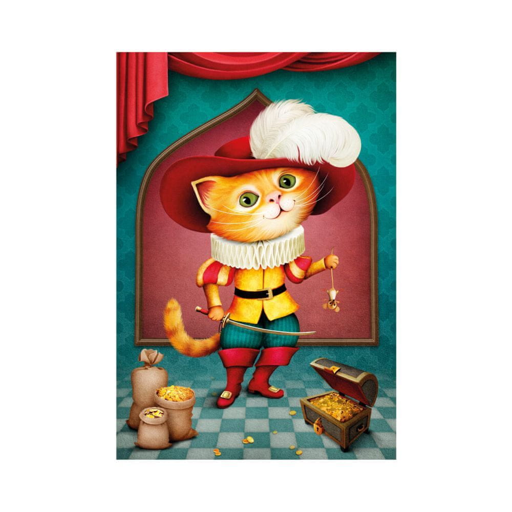 Dino obarvana naslovnica: Sestavljanka s pravljico Kocur v škornjih 24 kosov