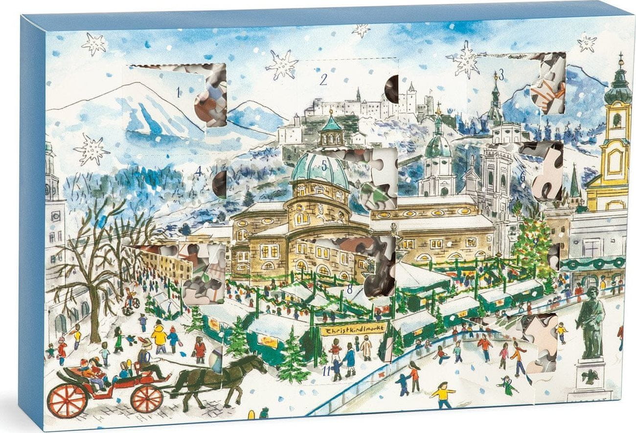 12-dnevni adventni koledar je zimski paket 12 sestavljank enake velikosti in števila kosov. Nagrajeni oblikovalec, ilustrator in kreativni direktor Michael Storrings z dvanajstimi ilustracijami ujame duh praznikov po vsem svetu. Ko izvlečete zunanji pokrov, se prikažeta vzorec in notranji pokrov z 12 tradicionalnimi okni. Vsak dan odprite eno, sestavite sestavljanko in božič je tu. Paketu je priložena obojestranska predloga z 12 motivi sestavljanke. Dimenzije zložene sestavljanke približno 12,7 × 17,8 cm.