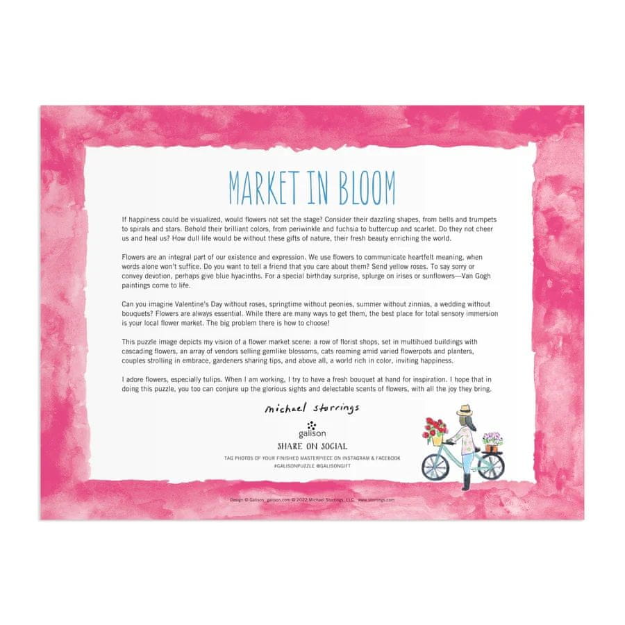 Nagrajeni oblikovalec in ilustrator Michael Storrings je čudovito ilustriral sončen dan na cvetlični tržnici. Sestavljanka je zapakirana v trpežni škatli za ponovno uporabo in shranjevanje. Idealno za darilo. Avtor slike je Michael Storrings. Sestavljanke so izdelane iz znatnega deleža recikliranega papirja in ponujajo vrhunski tisk z nenevarnimi črnili. Imajo matiran zaključek, ki vedno zagotavlja zvesto upodobitev podrobnosti in barv. Njihova hrbtna stran je prevlečena z gladko, na otip prijetno površino, ki preprečuje nastajanje prahu, ko je sestavljanka shranjena razgrnjena. Skupaj s skrbno zapakiranimi kosi boste našli tudi letak s sliko z navodili, ki običajno vsebuje dodatne informacije o ustvarjalcih in ozadju nastanka dela. Dobavljeno v izjemno trpežni in privlačni kartonski škatli, izdelani iz recikliranega kartona in trajnostno pridobljenih materialov s certifikatom FSC. Glavne značilnosti:2000 natančno izrezanih kosovPri izdelavi so uporabljeni reciklirani in trajnostno pridobljeni materialiPrimerno izbrani motivi priznanih ustvarjalcev in umetnikovTisk in izdelava najvišje kakovostiVključuje sliko z navodili
