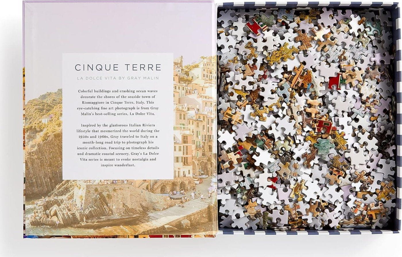 Puzzle Gray Malin: Cinque Terre v knjižni preobleki so različica klasične sestavljanke iz 1000 delov.