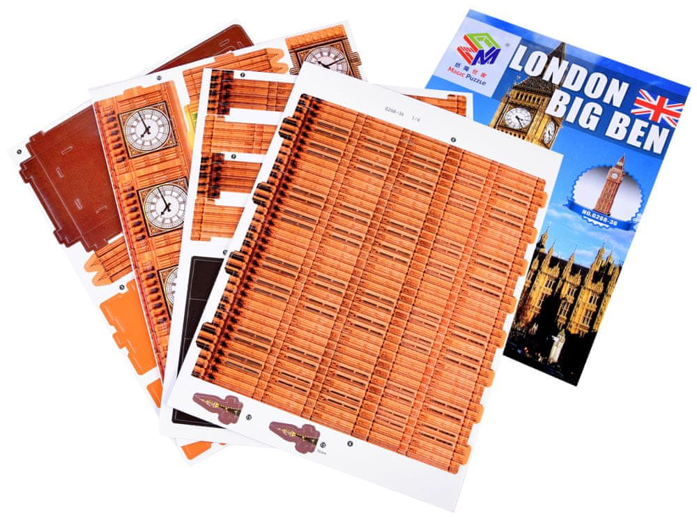 Tridimenzionalna 30-delna sestavljanka z londonskim BIG BEN bo zagotovo navdušila vsakega malega navdušenca nad 3D sestavljankami ali modeliranjem. Zdaj lahko miniaturno različico sestavite sami doma. Vsekakor bo lep dekorativni element vsake notranjosti, bo vir zadovoljstva in ponosa. Posamezni deli sestavljanke so položeni na posebne liste iz posebnega kartona. Za sestavljanje ne potrebujete nobenih ostrih predmetov ali lepila.