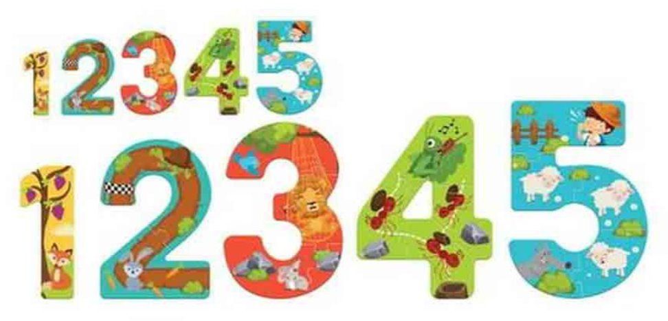 Popolna kombinacija zabavnega sestavljanja sestavljank, spoznavanja številk in spoznavanja znamenitih Ezopovih basni. Učne uganke z oblikami za otroke od 3. leta dalje. Paket vsebuje pet sestavljank, vsaka v obliki številk od 1 do 5. Sestavljanke imajo barvite živalske motive, ki so jih navdihnile poučne basni.