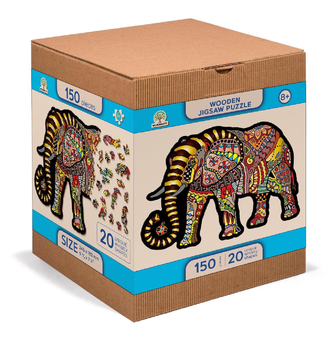 Wooden city Lesena mestna sestavljanka Čarobni slon, lesena, 150 kosov