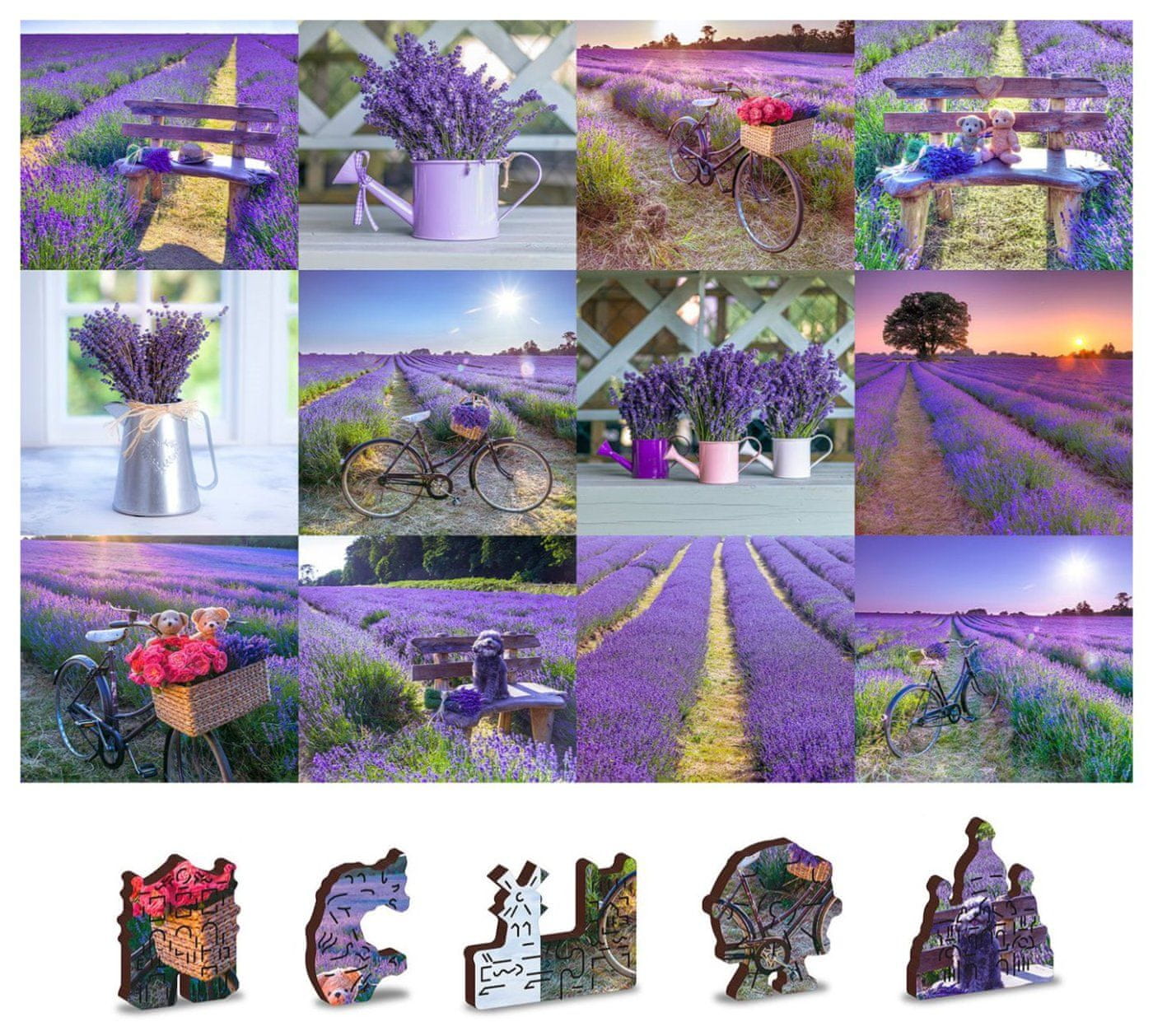 z edinstveno oblikovanimi kosi, ki predstavljajo znane zgradbe, predmete ali živali glede na temo motiva Večja težavnost z manjšim številom kosov – uganke z različno oblikovanimi kosi so večji izziv. Dvostranska sestavljanka 2 v 1 – na eni strani je slika, na drugi pa ponavljajoči se vzorec za sestavljanje po obliki gladki robovi brez drobcev zaradi natančne laserske obdelave iz trdne vlaknene plošče debeline 3–4 mm. V paketu je ločen vzorec za zgibanje Ekološko prijazno 100 % brez plastike – sestavljanka je v papirnati vrečki znotraj papirnate škatle primerno darilo za vsako priložnost