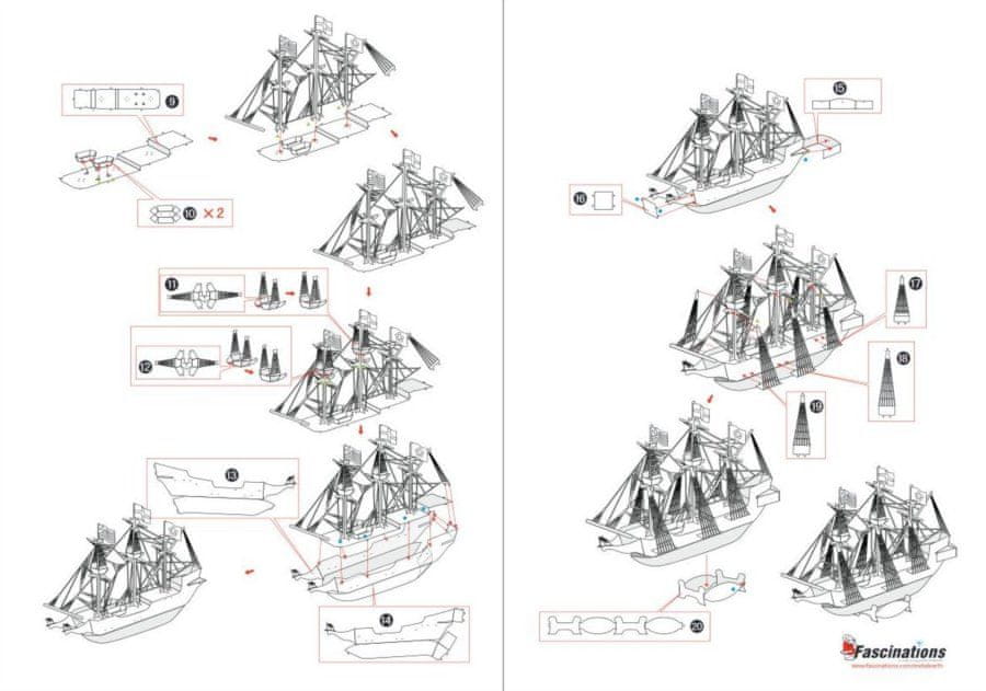 Posamezne kose odstranite iz kovinskih rezin, po potrebi uporabite majhne škarje za cepljenje (niso priložene). Kosi so med seboj povezani s ključavnicami, ki jih tvorita ročaj (kljun) in luknja. Z majhnimi tankimi kleščami (niso priložene) upognite kljun in postopoma združite vse ključavnice, da ustvarite zelo realistično mojstrovino!