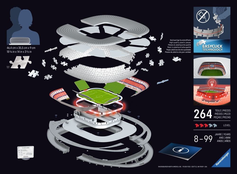 Ravensburger 3D puzzle Iconics: Allianz Arena (nočna izdaja) 216 kosov