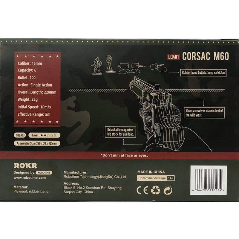 Robotime 3D lesena mehanska sestavljanka Revolver Corsac