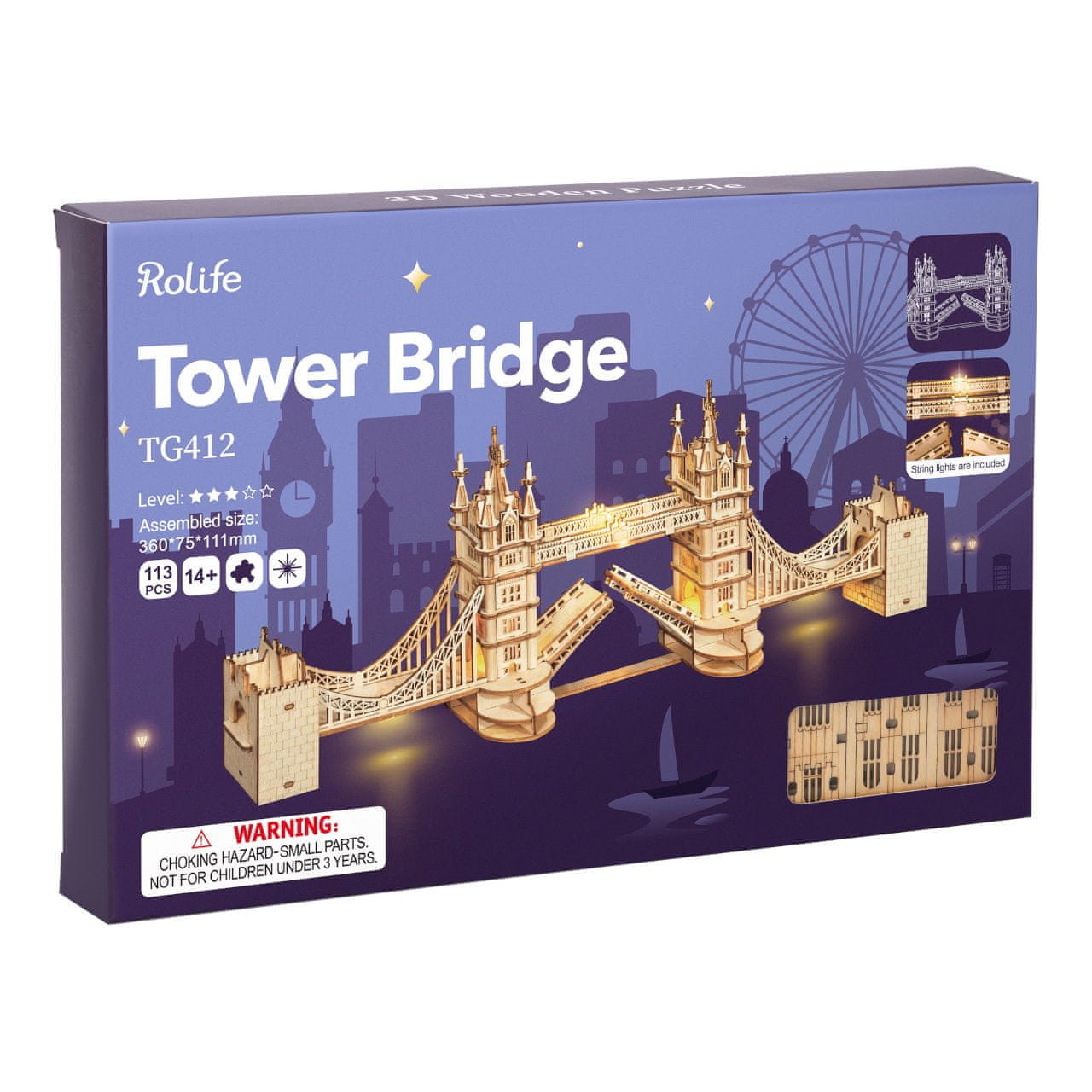 Robotime 3D lesena mehanska sestavljanka Tower Bridge s svetlobo