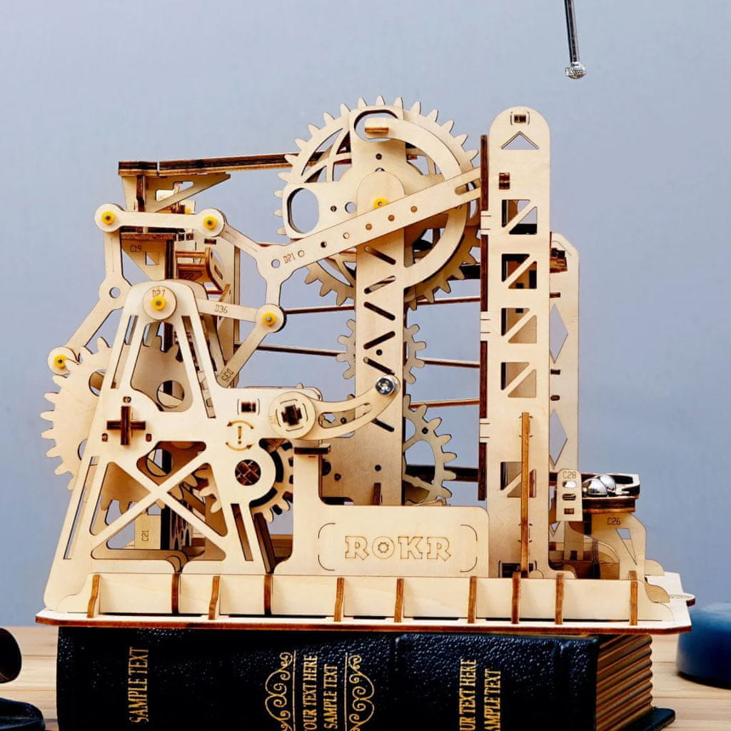 Vožnja s kroglo z dvigalom v jašku in veliko kaskado. Uganke s kroglično progo Robotime ponujajo podrobnosti in variabilnost, ki jih doslej še niste videli. Vsaka se ponaša z izvirnimi funkcionalnimi podrobnostmi in nenavadnimi ovirami, ki pogosto domiselno spreminjajo pot kroglice in zagotavljajo izjemno zabavo. Mehaniko poganja ročna vrtljiva ročica, ki se uporablja tudi za občasno dvigovanje in spuščanje kroglic po poti. Sestavljanka je dobavljena nesestavljena, pakirana v škatli. Priložena so podrobna navodila za sestavljanje. Glavne značilnosti:steza za sestavljanko in 10 kroglic219 natančno izrezanih delovsrednja težavnost sestavljanja