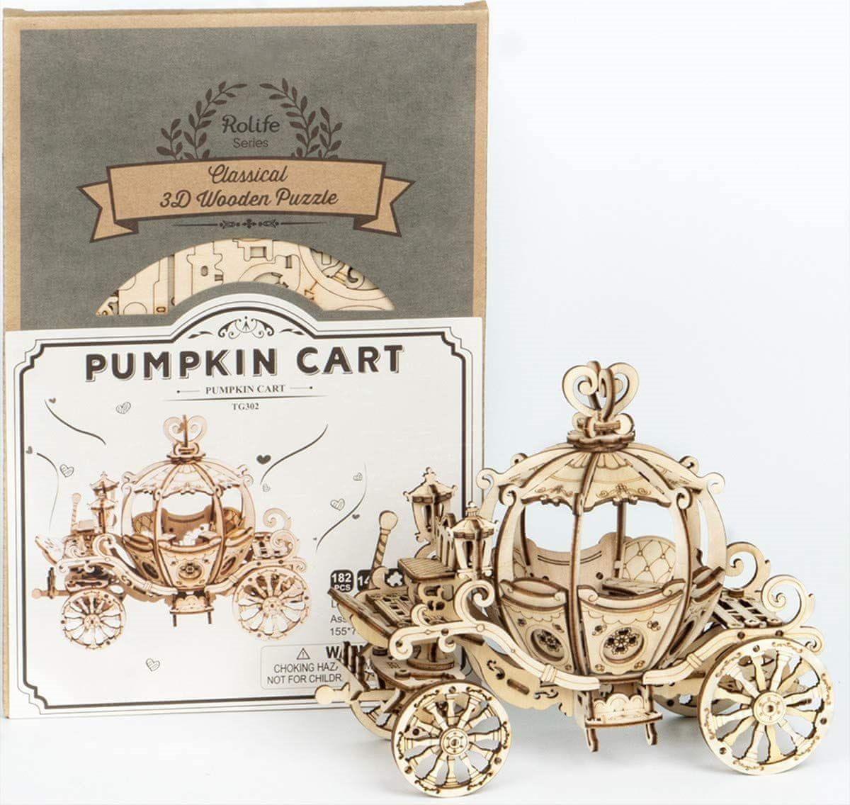 Robotime Rolife 3D lesena sestavljanka Kočar z bučami 182 kosov