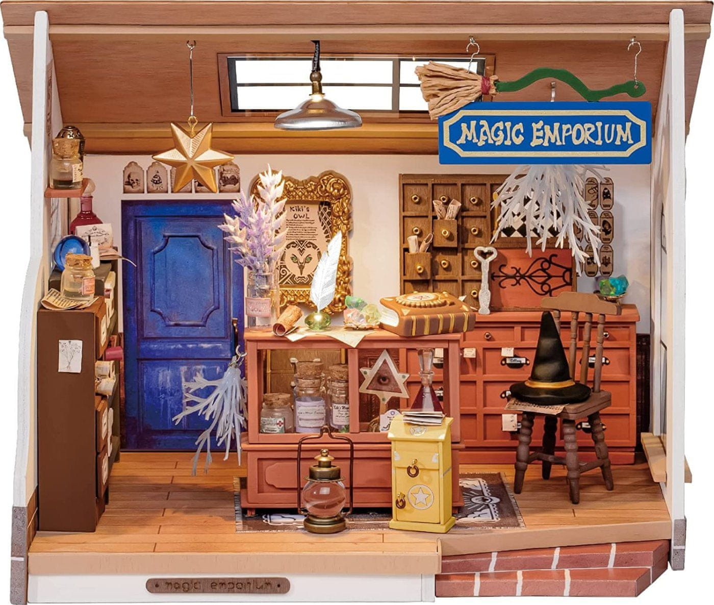 ROBOTIME ROLIFE Do It Yourself Miniature – Mystic Archives predstavlja pomanjšane modele sob, hiš in vrtov. Z lastnimi rokami lahko pričarate neverjetna dela z več deset miniaturnimi podrobnostmi. Uživajte v urah ustvarjanja in uživajte v čudovitih rezultatih. Rolife Kiki's Magic Emporium je skrivnostna miniaturna hiša „naredi sam“ iz serije Mystic Archives. S kombiniranjem klasične barvne sheme in elementov je oblikovalec ustvaril trgovino za nedolžno in prikupno čarovnico Kiki, potem ko je postala samostojna podjetnica. V njej boste našli metle, čarobne knjige, kristalne krogle, faraonove oči, čarobne eliksirje in še več. Ljudje prihajajo sem s svojimi željami, tisto, za kar morajo plačati, pa so skrivnosti, ki jih skrivajo v svojih srcih. Vse pohištvo in dodatke, prikazane na sliki, morate izdelati sami (vključno z rezanjem, sestavljanjem in lepljenjem).