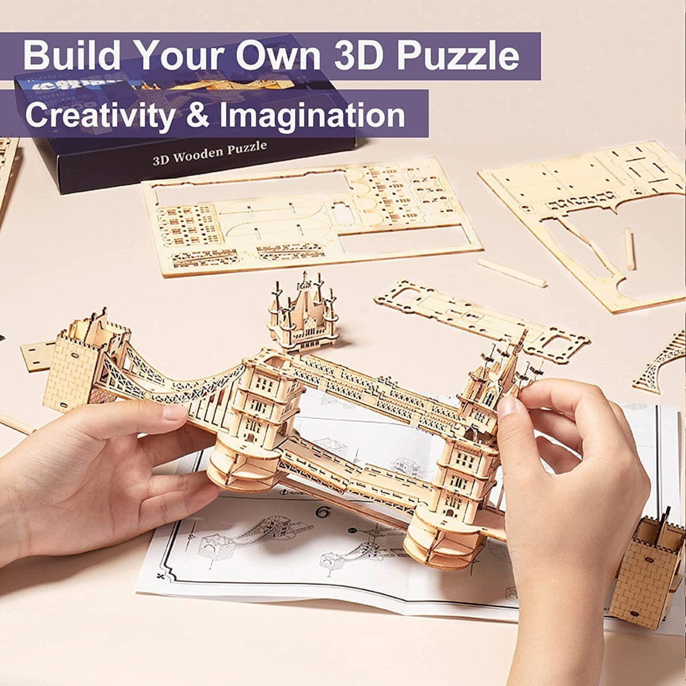 Robotime Rolife Osvetljena 3D lesena sestavljanka Tower Bridge 113 kosov