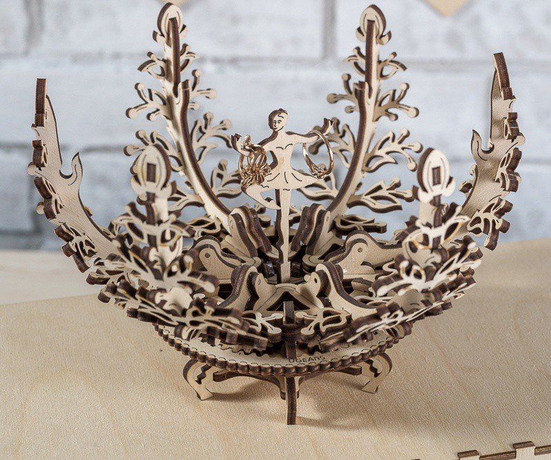 Dimenzije paketa: 37,4×17×3 cm Dimenzije sestavljenega modela: 13×13×16 cm Starost: 14+ Število kosov: 101 Material: les Čas sestavljanja: 1,5–2 ure Zahtevnost: srednja Celoten opis