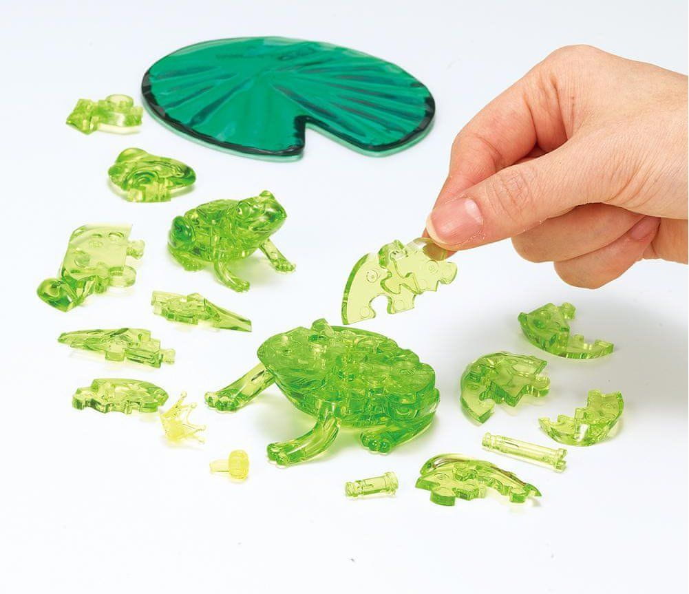 Različno oblikovane posamezne dele po kosih sestavite v čudovito plastično kristalno figuro v obliki para zelenih žabic. Celoten opis
