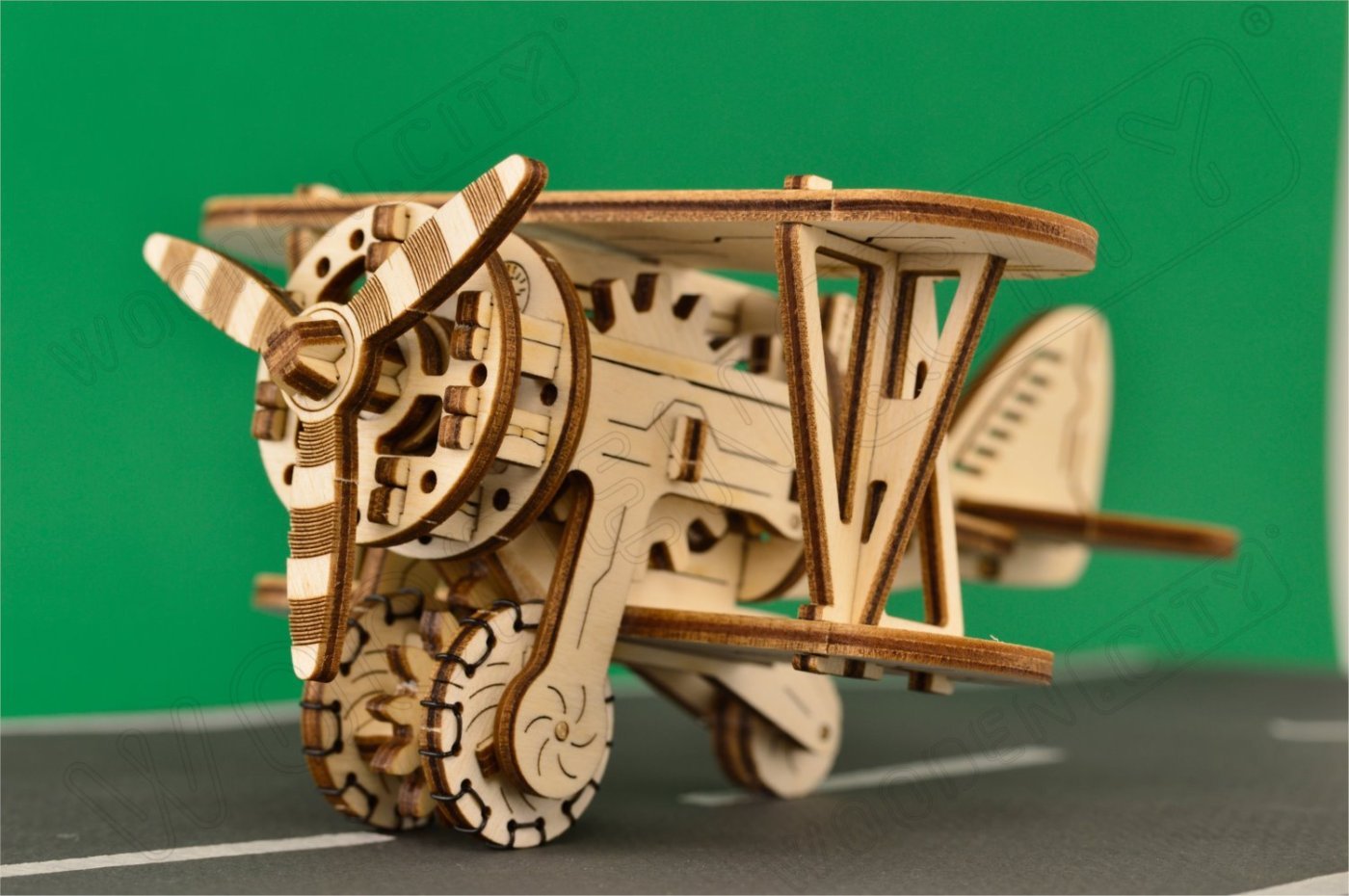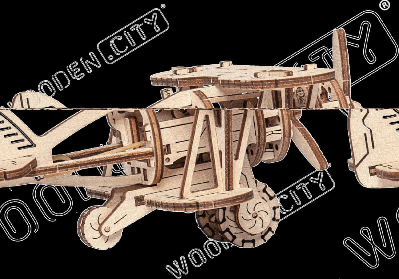 Divje modro nebo kliče! Leseni mehanski komplet modela Biplane ima edinstveno obliko in presenetljive podrobnosti. Podajte se na svojo lastno pustolovščino Indiane Jonesa – z dvosedežnim letalom po meri podjetja WOODEN CITY si zlahka predstavljate, da letite po zraku in bežite pred zasledovalci z očetovim dnevnikom, kot v filmu Indiana Jones in zadnja križarska vojna. Če ste romantik, boste leteli po sledeh francoskega pisatelja in pionirja letalstva Antoina de Saint-Exupéryja, avtorja Malega princa. Na nekdanjem postajališču družbe Aéropostale na letališču jugozahodno od maroškega mesta Tarfaya je poleg majhnega muzeja tudi posebno spominsko obeležje za dvokrilno letalo, ki je posvečeno Saint-Exupéryju. Model letala ima propeler, ki ga poganjajo gumijasti trakovi („motor iz smole“) z nastavljivim pospeškom. Njegove lopatice se vrtijo, letalo pa na ravni podlagi hitro pospešuje. Uživajte! Nadzor nad tem posebnim letalom je v vaših rokah. 3D sestavljanka WOODEN CITY Biplane bo najboljše darilo za vse ljubitelje letal. Težavnost: 3 od 5 (po mnenju oddelka Wooden City) Približni čas sestavljanja: 2 uri Merilo: 1:50 3D lesene sestavljanke WOODEN CITY so podrobni in funkcionalni mehanski modeli, ki jih sestavite brez lepila ali orodja. Izdelani so iz okolju prijaznih lesenih materialov – visokokakovostne vezane breze. Z mehanskimi lesenimi sestavljankami WOODEN CITY se boste ure in ure zabavali ob sestavljanju ter od blizu spoznali zobnike, gumijaste motorje, zobniška kolesa in druge sestavne dele.