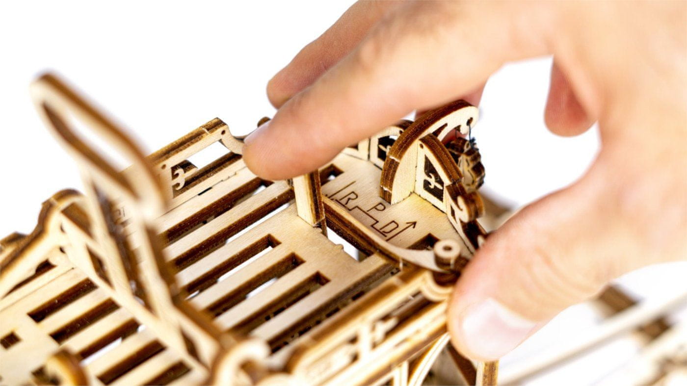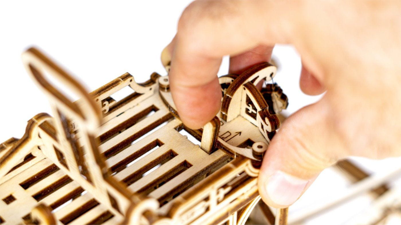 Funkcionalni mehanski model, ki se zloži brez lepila ali orodja kakovostna izdelava iz naravnega materiala izdelani detajli slikovna navodila