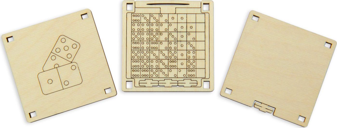 Lesena 3D sestavljanka, ki po sestavitvi služi kot žepna igra za krajšanje časa.