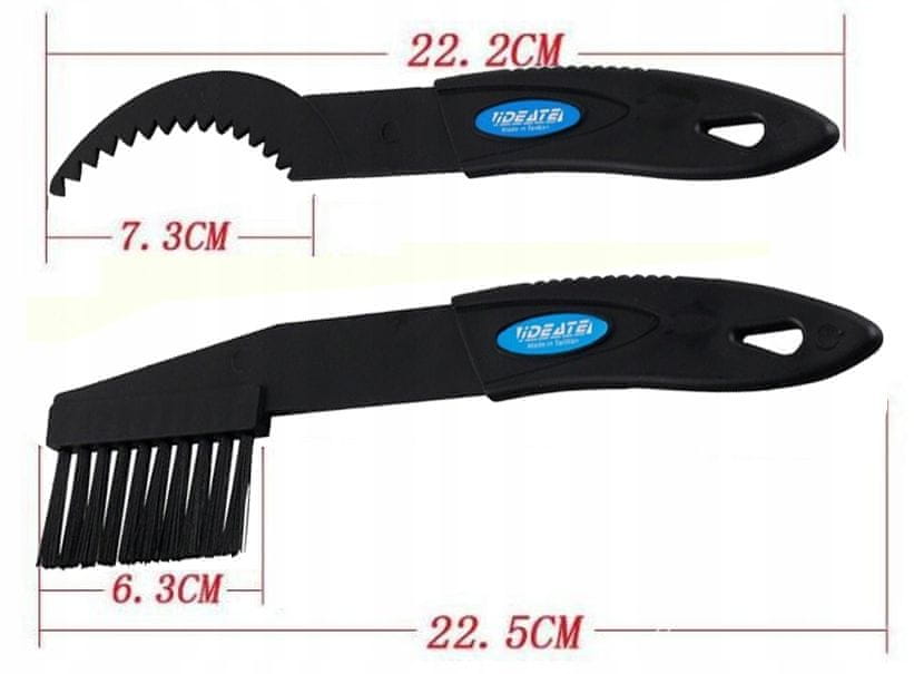 Set vključuje: 1. Gearox Ekstraktor umazanije – 100 ml: Visokokakovostno čistilo za odstranjevanje umazanije in odvečnih maščob s površine verige in njenih skritih kotov. Ne pušča mastnega ostanka. 2. Gearox Aktivni čistilec – 100 ml: Specializiran čistilec za verige z aktivnimi dodatki za učinkovito raztapljanje ostankov olj in maziv. Priročen dosirnik omogoča enostavno uporabo. 3. Gearox Olje za verige: Visokokakovostno olje, ki učinkovito maže verigo in druge gibljive dele. Je čisto, brez vonja in barve, zasnovano za vse vremenske pogoje ter okolju prijazno in biorazgradljivo. 4. Naprava Gearox ChainCare System Tool s tremi ščetkami za temeljito čiščenje in mazanje verige brez potrebe po odstranitvi iz napenjalnega sistema. 5. Orodje za merjenje obrabe verige iz kaljenega jekla z oznakami 0,75 in 1.0 za pravočasno zaznavanje potrebe po menjavi. 6. Dve prilagojeni ščetki za čiščenje kaset in drugih komponent pogona, lahke in ergonomsko oblikovane. 7. Dve nitrilni rokavici, odporni na olja in maziva, povečujeta varnost in udobje med delom. Vse kemikalije v setu so proizvedene v EU pri zanesljivih proizvajalcih, kar zagotavlja visoko kakovost in varnost uporabe. Z Mega Setom za Čiščenje in Mazanje Verige Gearox boste uživali v gladki vožnji in dolgotrajni zaščiti vašega kolesnega pogona.