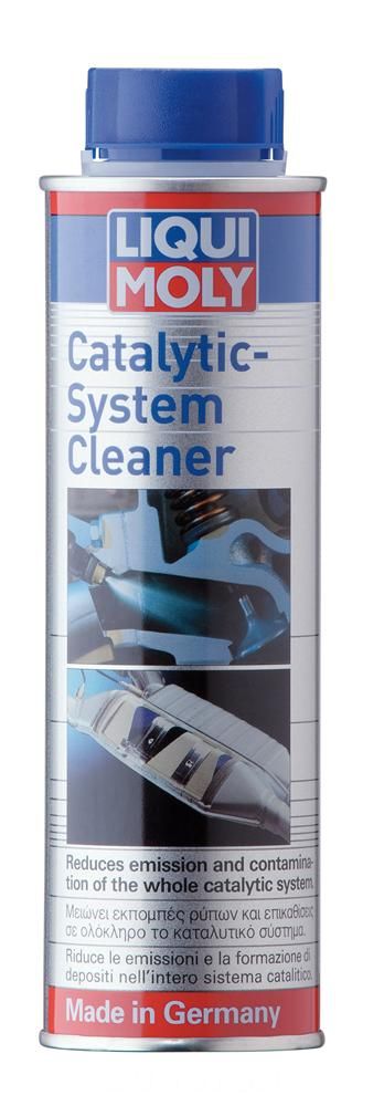 Liqui Moly Catalytic System Cleaner sredstvo očisti katalizator in zmanjša emisije izpušnih plinov. Učinkovito odstranjuje olja, smole, ostanke lepila ipd. Uporaba je primerna zgolj pri delujočem motorju. Sredstvo obenem lahko služi kot sredstvo za reševanje problema visokih emisij.