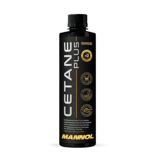 Mannol Cetane Plus je poseben multifunkcijski aditiv namenjen za dodajanje k dizelskemu gorivu. Povečuje cetansko število ter se ponaša z detergentnimi lastnostmi. Primeren za vse vrste dizelskih motorjev (s turbopolnilnikom ali brez turbopolnilnika), z vgrajenimi filtri za delce in katalizatorji ali brez njih.