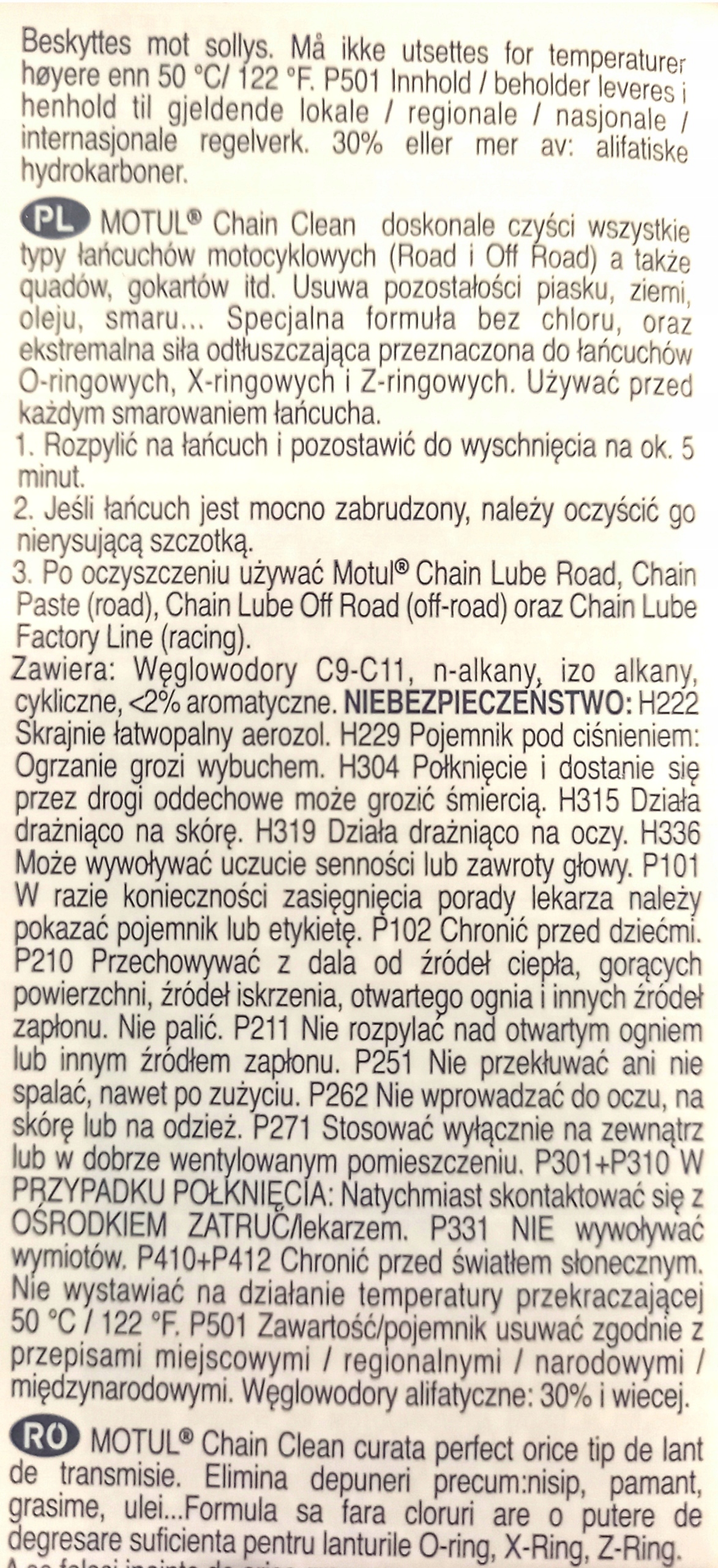 Uporaba: Pretresite pločevinko, namažite verigo od znotraj, počakajte 15 minut.