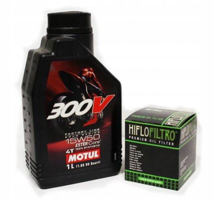 OLJE MOTUL 300V 1L 15W50 TOVARNIŠKA LINIJA + FILTER HF655 Adventure Duke Rally