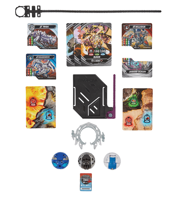 Bakugan Starter set vsebuje tri Bakugan magične krogle, ki se v stiku s kovino spremenijo v fantastična bitja: Nillious-a, Dragonoid-a in Trox-a. 3-delno kroglo otroci sestavijo sami, magnetna ploščica, ki kroglo spremeni v lik pa je priložena.