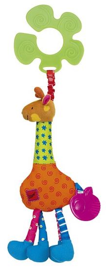 Žirafa, ki jo obesite na voziček ali nad otroško posteljico, pritegne otrokova vidna, otipna in slušna čutila. Žirafa je narejena iz različnih materialov in ob dotiku šumi. Celoten opis
