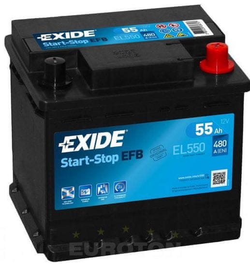 Exide AKUMULATOR 55AH D+ 540A EFB 207X175X190 - 55AH EL550