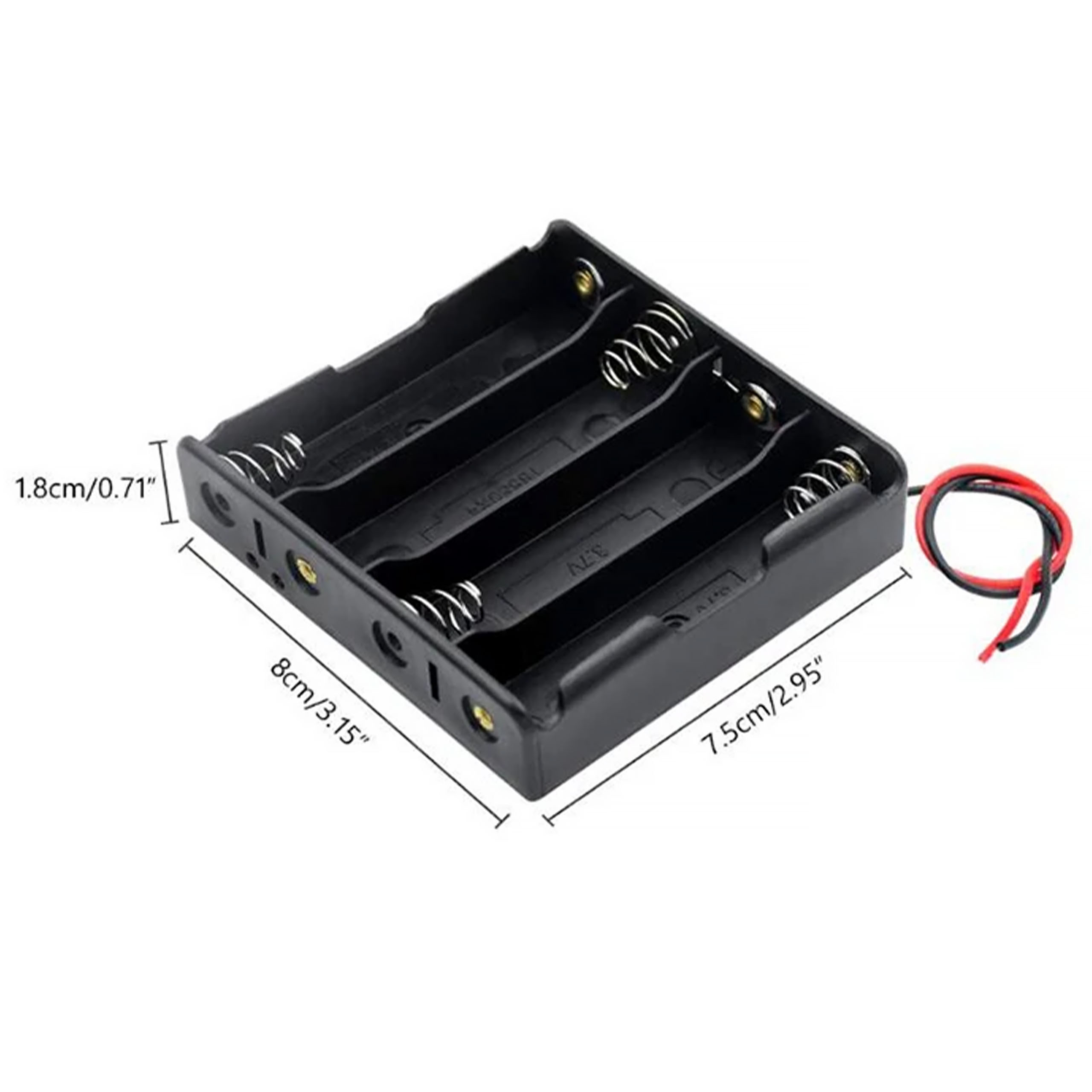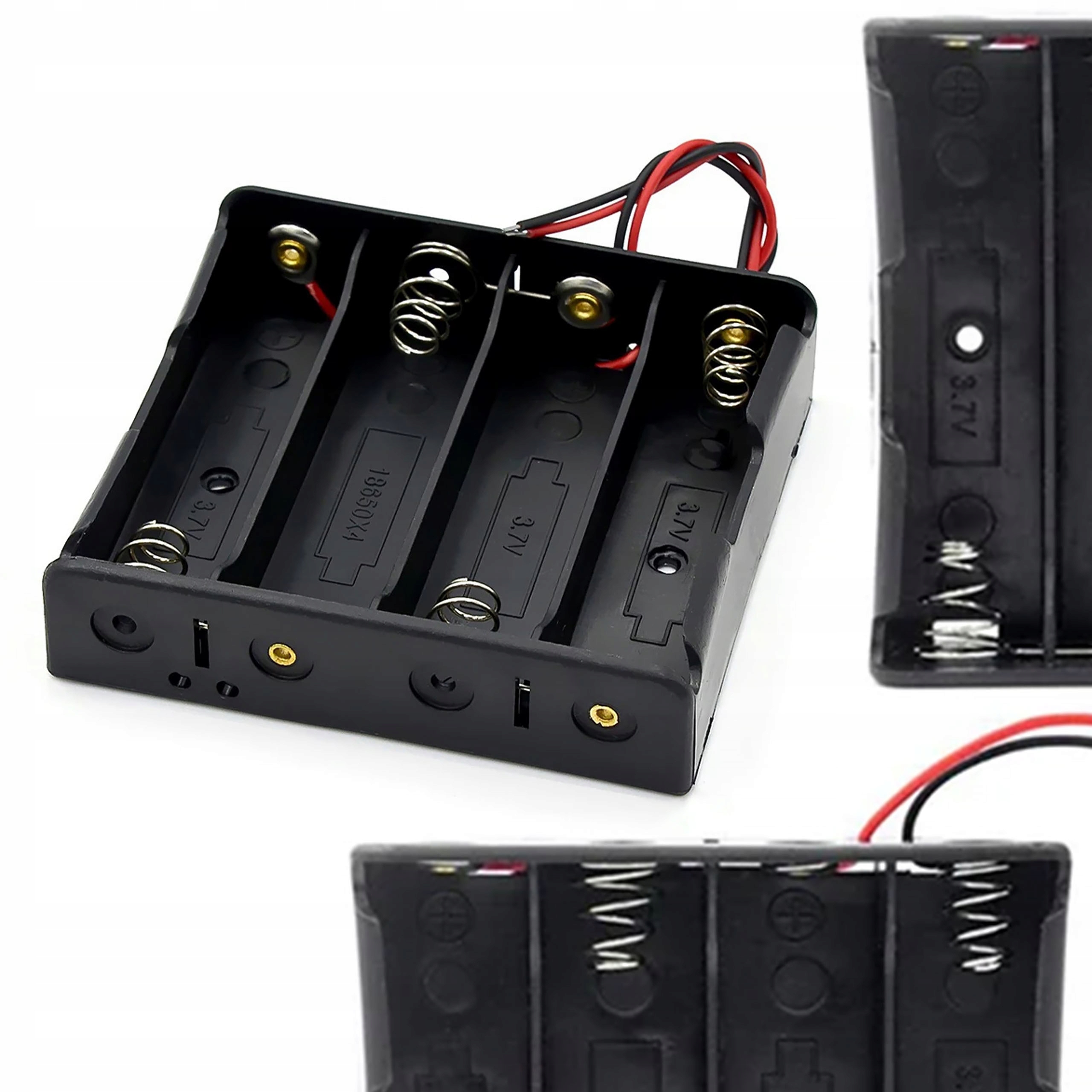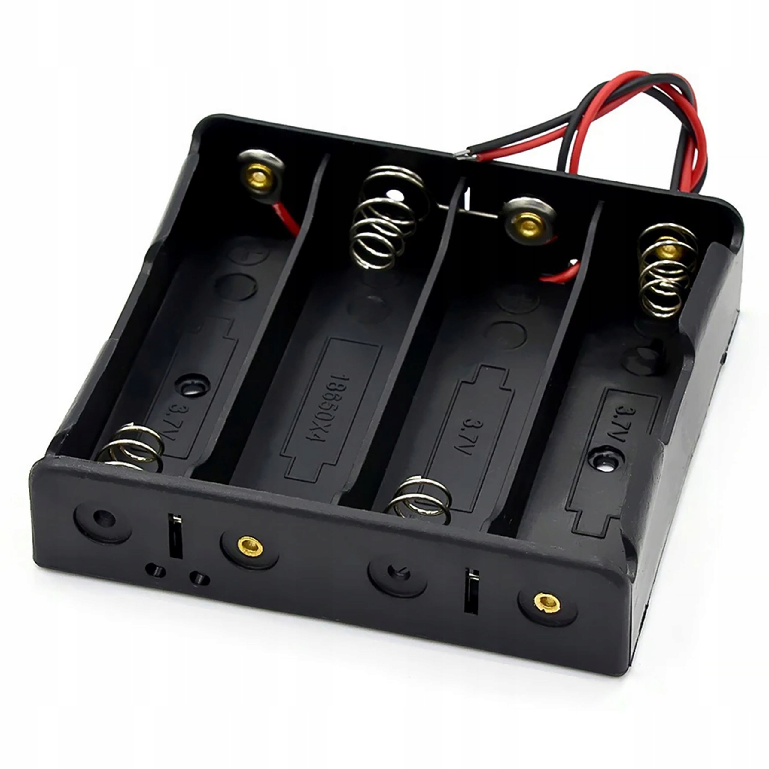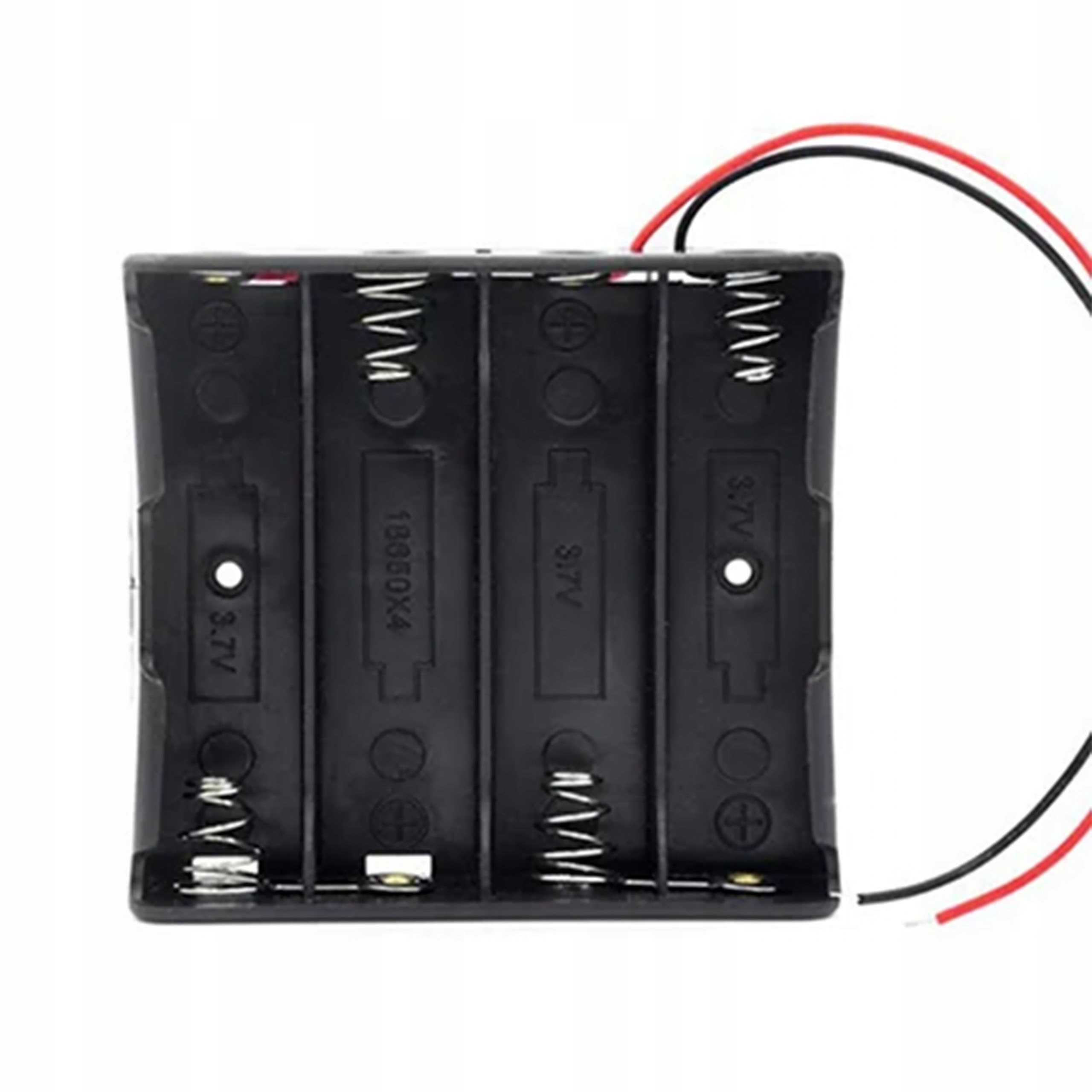 Košara za baterije je zasnovana za štiri baterije tipa 18650 in je opremljena s 100 mm dolgim kablom za enostavno povezavo z drugimi napravami ali vezji. Košara je odprta za enostavno zamenjavo baterij in dostop do kablov. Idealna je za različne projekte „naredi sam“ in aplikacije, kjer je potrebna stabilna in enostavna za sestavljanje zasnova za baterijo 18650.