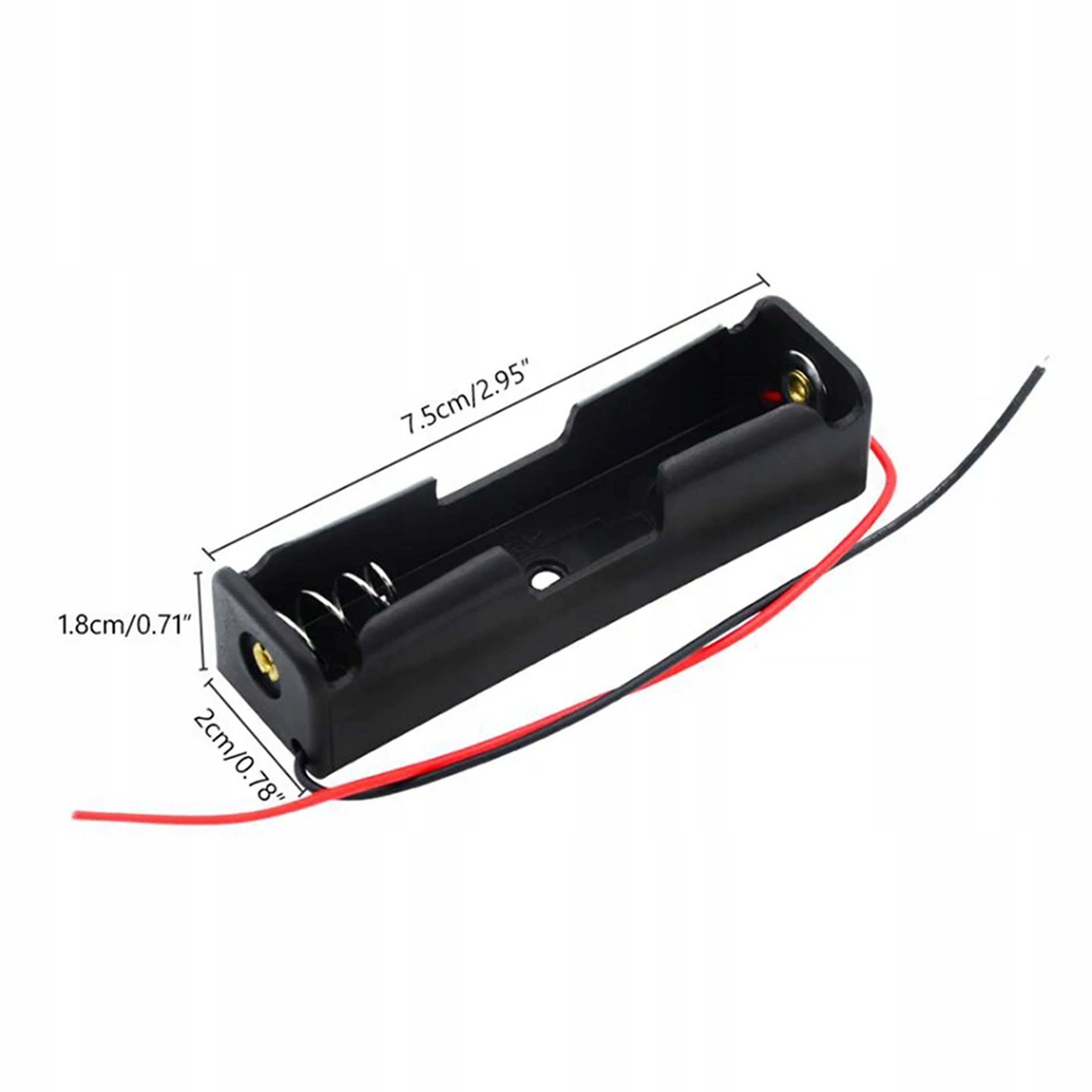 Ta košara za baterije je namenjena eni bateriji tipa 18650 in je opremljena s 100 mm dolgim kablom za enostavno povezavo z drugimi napravami ali vezji. Košara je odprta za enostavno zamenjavo baterije in dostop do kablov baterije. Idealna je za različne projekte „naredi sam“ in aplikacije, pri katerih je za baterijo 18650 potrebna stabilna in enostavna namestitev.