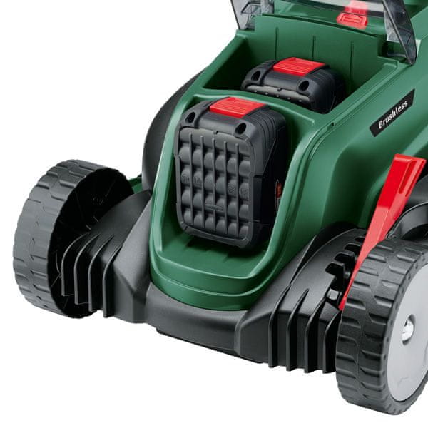 Akumulatorska rotacijska kosilnica UniversalRotak 2× 18V-37–550 (0.600.8B9.E00) je opremljena s tehnologijo Syneon za optimalno delovanje in najdaljši čas delovanja. Ima brezogljični motor za odlično zmogljivost rezanja in daljšo življenjsko dobo. Praktičen ročaj Ergoflex in zložljiva 40-litrska tekstilna košara z indikatorjem napolnjenosti za ažurne informacije.