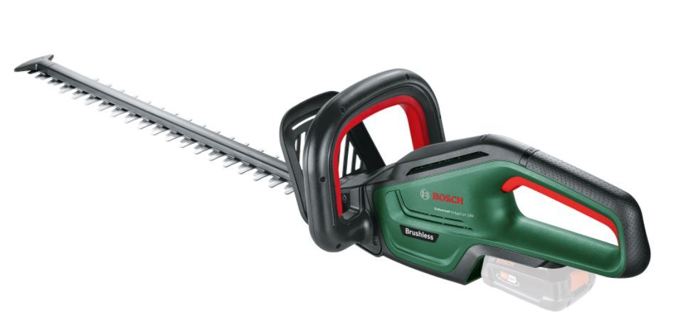 Akumulatorske škarje za živo mejo UniversalHedgeCut 18–55 – golo orodje (0.600.849.J00), znamke Bosch. Napetost 18 V. Dolžina lista je 55 cm. Razmik 22 mm. Dimenzije 1033,2 × 239,5 × 189,2 mm. Število rezov 2800 /min. Podpora za standard baterij POWER FOR ALL 18 V. Teža 2,7 kg. Celoten opis