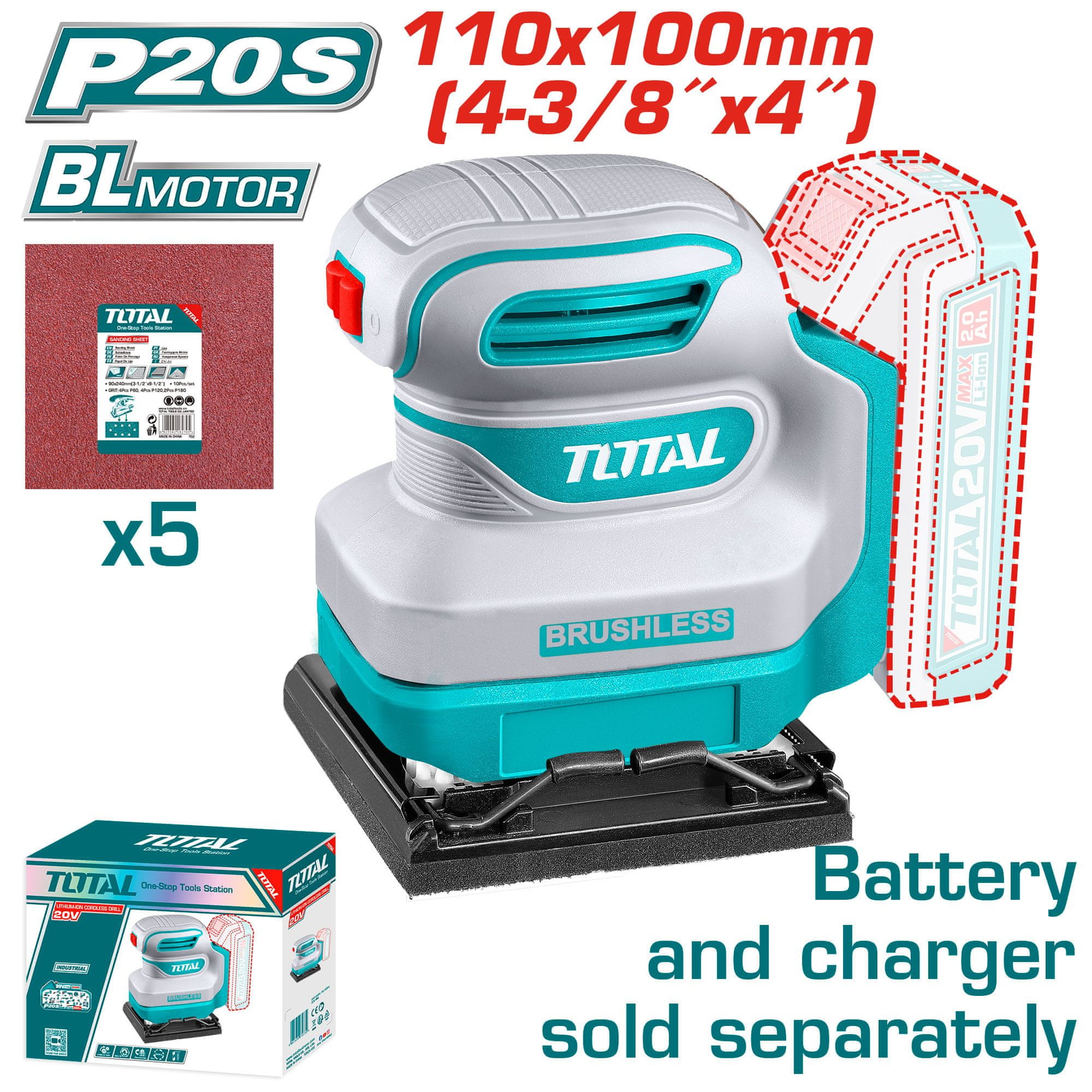 TOTAL akumulatorski brusilnik TSHSLI2024 iz serije INDUSTRIAL je kompakten in učinkovit pripomoček za brušenje ravnih površin in detajlov. Deluje na 20 V P20S sistemu, kar omogoča popolno svobodo gibanja brez kablov.