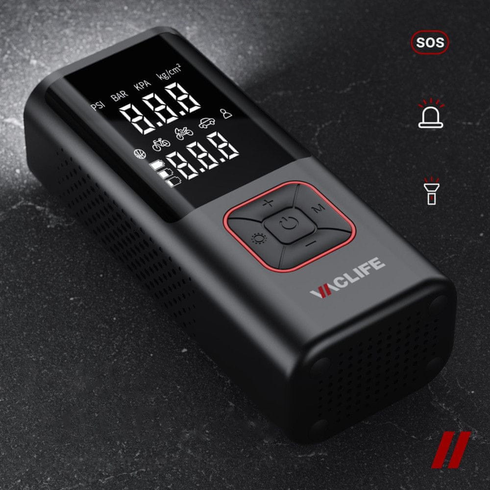 ✅ 4 NAČINI in 4 TLAČNE ENOTE. Ta baterijski kompresor omogoča štiri načine delovanja, ki so primerni za napihovanje avtomobilov, motorjev, koles in različnih žog. S kratkim pritiskom gumba za način lahko preprosto preklapljate med načini. Podpira tudi 4 enote zračnega tlaka Psi, Bar, Kpa in Kg/cm3, ki jih lahko prilagodite z dolgim pritiskom gumba za način.