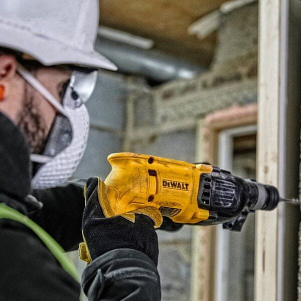 Udarno vrtalno kladivo z ročajem SDS+ za vrtanje v les, jeklo, keramiko… Mehanska sklopka odpravi nenadno reakcijo visokega navora, če se malo zatakne. Idealno za vrtanje sider in odpiranje lukenj v betonu in stenah s premerom od 4 do 22 mm. Velik udarni mehanizem zagotavlja visoko zmogljivost z malo obremenitve kritičnih komponent, kar ima za posledico večjo vzdržljivost. Zaobljena ergonomska industrijska zasnova omogoča enostavno in udobno rokovanje v kateri koli aplikaciji. Izboljšano tesnjenje za maksimalno zaščito pred vdorom prahu zagotavlja dolgo življenjsko dobo orodja. Reže za izhod zraka so zasnovane za zaščito uporabnikovih oči. Elektronska spremenljiva hitrost za popoln nadzor v kateri koli aplikaciji. Zaustavitev vrtenja za lahko klesanje v opeko, zid in občasno beton.
