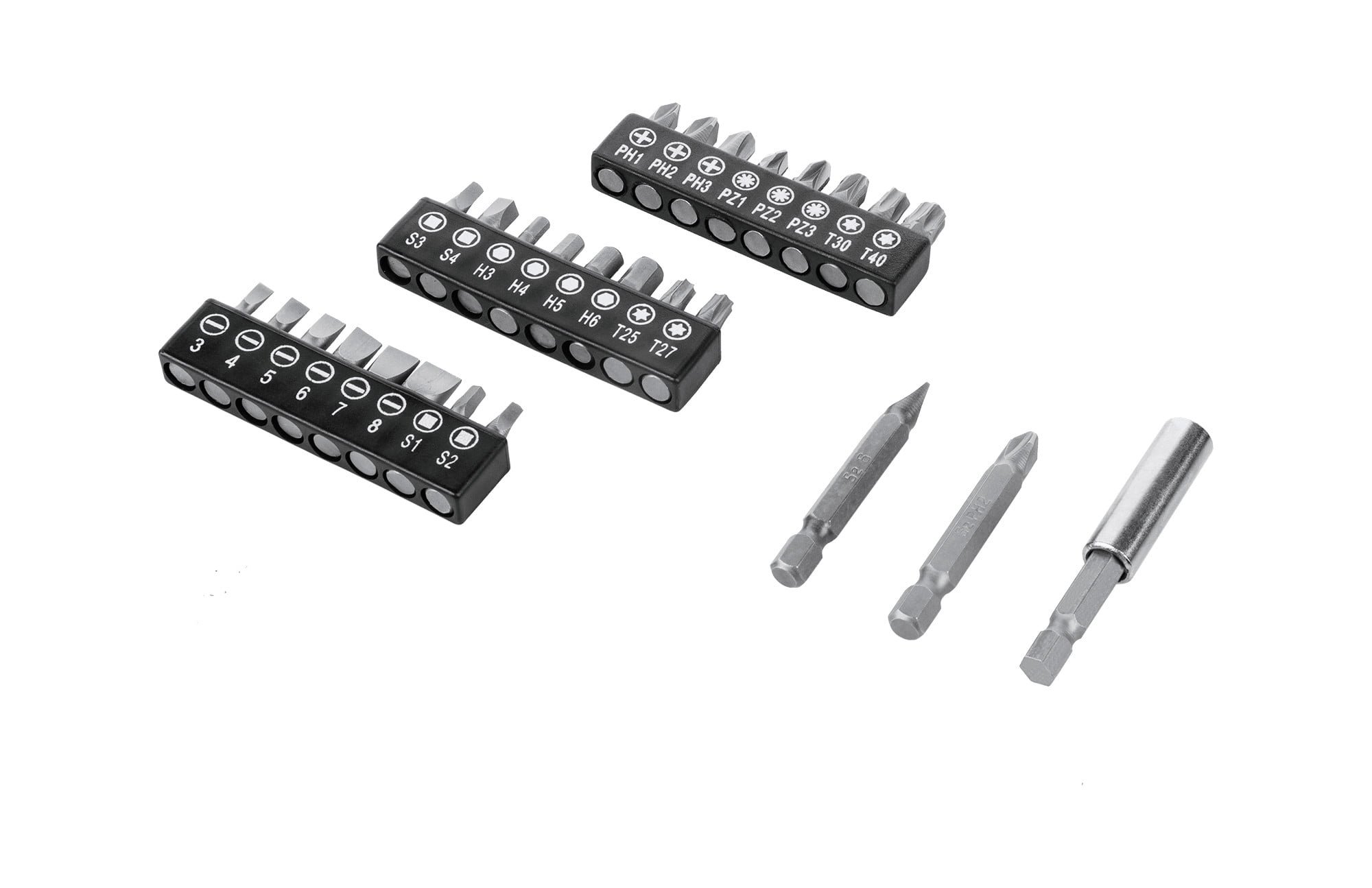 - Magnetni Nosilec: Olajša menjavo nastavkov in omogoča varno držanje vijakov med uporabo.