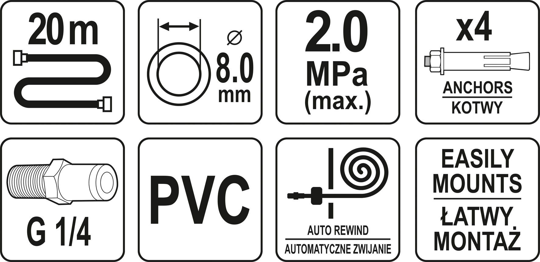 PNEVMATSKA CEV NA AVTOMATSKEM NAVIJALCU 8MM 20M – YT-24244 Celoten opis