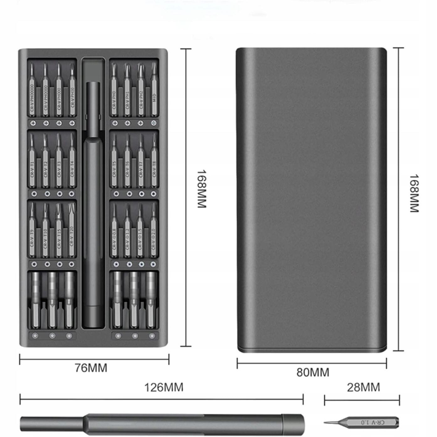 Več vrst bitov:Komplet vsebuje različne nastavke, ki jih je težko najti v osnovnih kompletih izvijačev, kar olajša odpiranje naprav z različnimi vrstami zaščite.