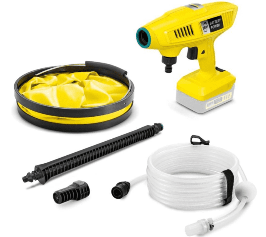 • Karcher ročni akumulatorski srednjetlačni čistilnik KHB 4–18 Plus je kakovosten, praktičen in trpežen pripomoček za čiščenje vrtnih korit, igral, zabojnikov za odpadke, vrtnih naprav, vrtnega pohištva, koles, vrtnih ograj, plezalni ogrodij …