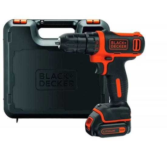 Black&Decker akumulatorski vrtalnik/vijačnik se ponaša z 10,8-V baterijo, hitrostjo do 550 o/min, LED svetilko in kompaktno zasnovo. Baterija in polnilnik sta priložena. Celoten opis