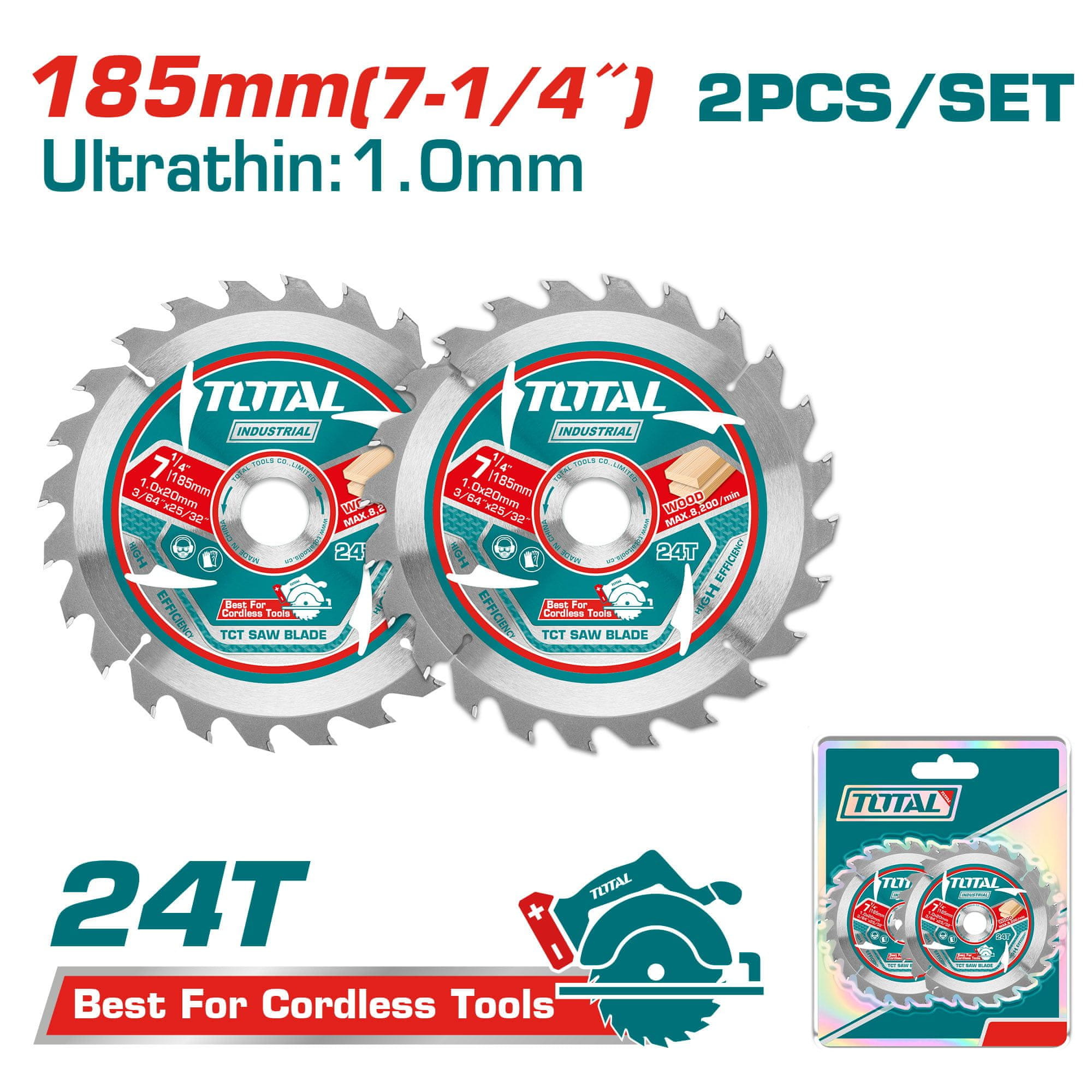 Total One-Stop Tools Set ultra tankih listov za žago TCT, 185mm /2pcs/ INDUSTRIAL (TAC2331853)