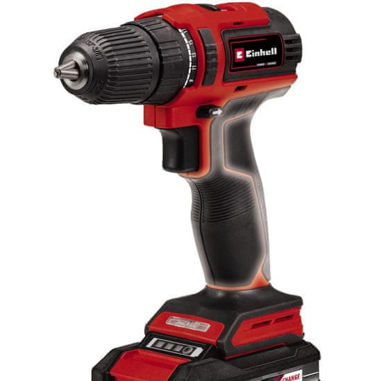 Akumulatorski vrtalnik/vijačnik Einhell TE-CD 18/40 Li BL za zmogljivo vrtanje in hitro vijačenje zagotavlja največji navor 40 Nm z robustnim dvostopenjskim menjalnikom. Zahvaljujoč najsodobnejši tehnologiji akumulatorskih baterij serije Power X-Change, vijačnik zlahka opravi lahka vrtalna dela. Brezkrtačni motor ni podvržen mehanski obrabi, zato ponuja večjo moč in deluje dlje kot običajni motorji. Njegovo enostavno rokovanje zagotavlja, da lahko delate brez utrujenosti, zaradi ergonomske oblike in mehkega ročaja pa vrtalnik/vijačnik omogoča tudi trden in varen oprijem. Elektronski nadzor hitrosti ob vsej njegovi moči zagotavlja, da je orodje še vedno mogoče prilagoditi določenemu materialu in načinu uporabe. Opremljen z visokokakovostnim 10-milimetrskim vpenjalom in LED-razsvetljavo za optimalno delovanje v temnih prostorih. Akumulatorje z visokokakovostnimi litij-ionskimi celicami lahko uporabljate za vse člane družine Power X-Change.