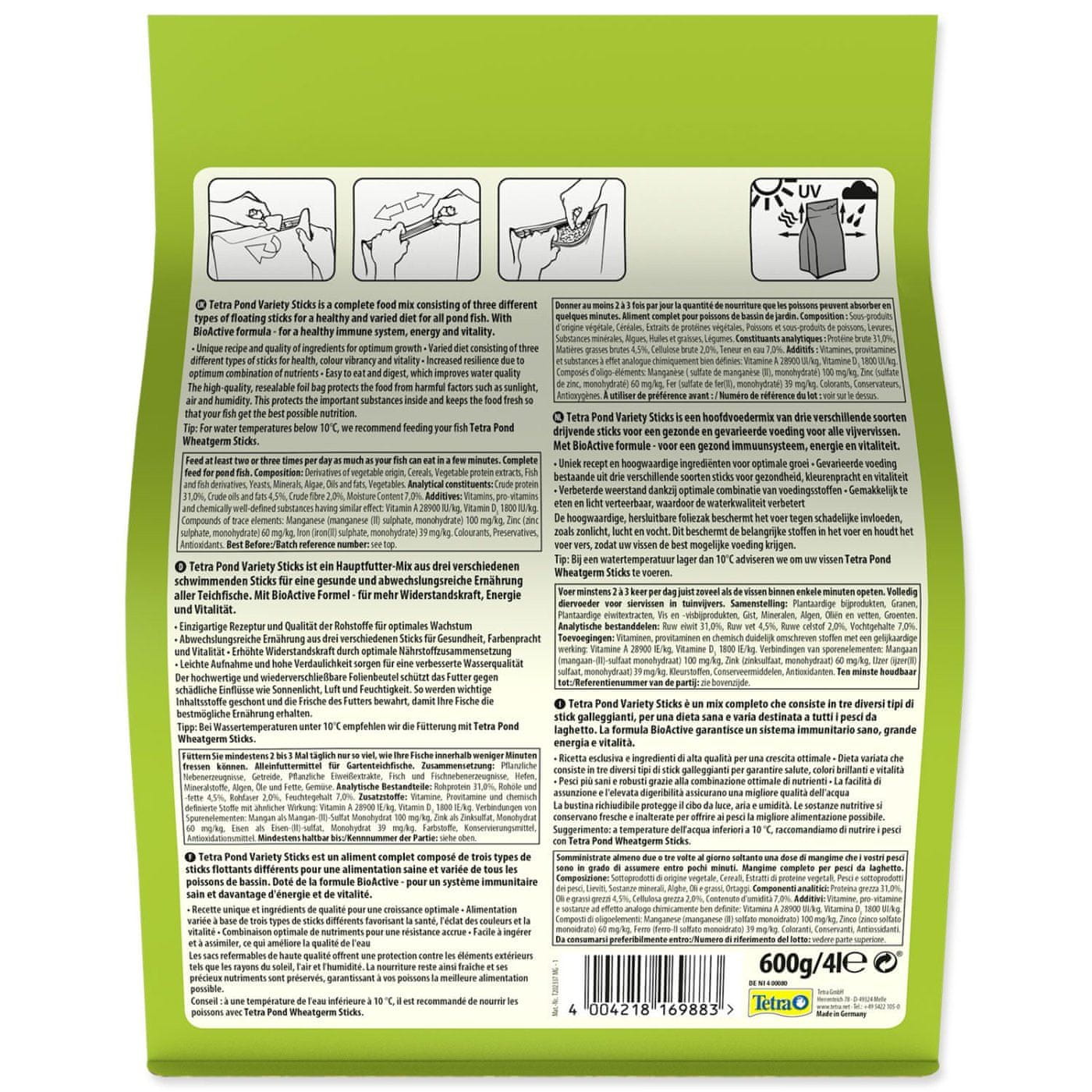 Kombinacija treh različnih vrst palčk zagotavlja optimalno uravnoteženo prehrano za jezerske in bazenske ribe. Hrana vsebuje vsa pomembna hranila, vitamine in elemente v sledovih za zdravje rib ter patentirano formulo Activ za ohranjanje zdravega imunskega sistema. Z visokokakovostnim, biološko aktivnim belilcem barv bodo imele ribe čudovite barve in intenziven sijaj.