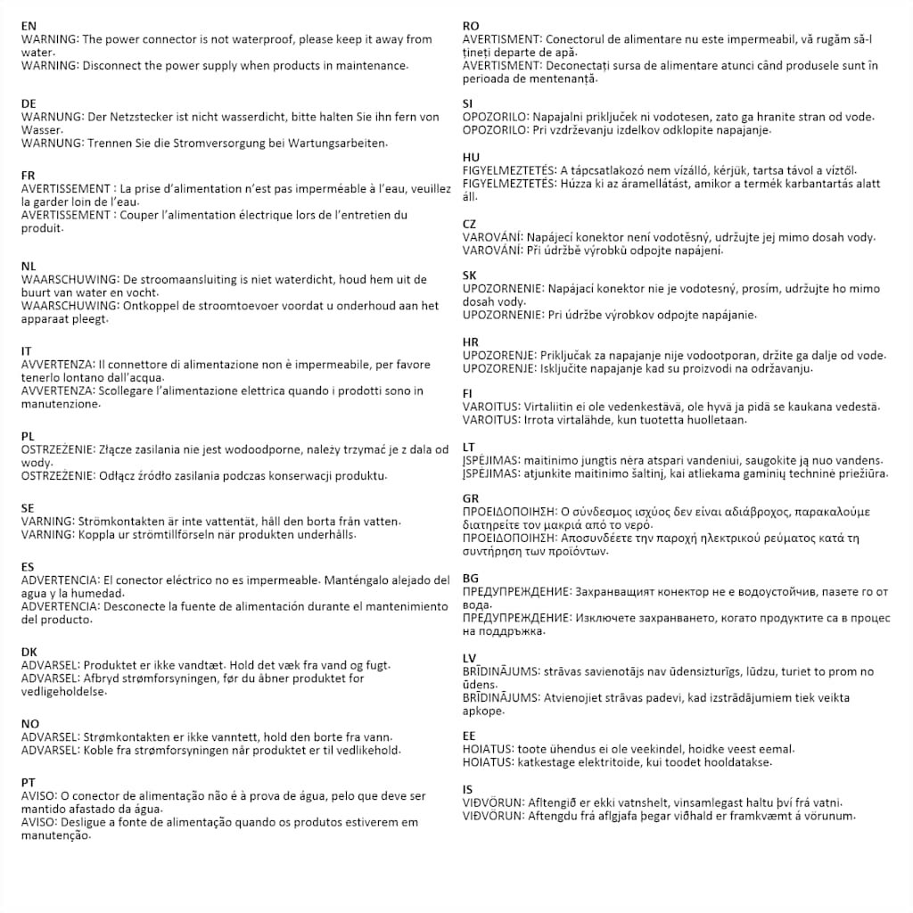 Ne priključite tega izdelka na noben napajalni vir ali adapter, razen tistega, ki je opisan v navodilih, na znamki ali posebej priporočeni s strani vidaXL. Ta naprava ne sme biti uporabljena s strani otrok, mlajših od 14 let, ter oseb z zmanjšanimi telesnimi, čutnimi ali duševnimi sposobnostmi ali pomanjkanjem izkušenj in znanja o uporabi električnih naprav. Elektrika je nevarna. Poškodbe in nepravilna namestitev, uporaba ali spreminjanje (zamenjava posameznih komponent) lahko povzroči poškodbe naprave in električnih napeljav, kar lahko privede do električnega udara in nevarnosti za uporabnika. Ne uporabljajte tega izdelka v eksplozivnih atmosferah, kot so prisotnost vnetljivih tekočin, plinov in prahu, ali nad 50 stopinj Celzija. Ne vključujte izdelka, če sta povezovalni kabel ali adapter vidno poškodovana. Nikoli ne odpirajte ali vstavite ničesar v električne vtičnice ali naprave. Takšno ravnanje lahko povzroči resno nevarnost za življenje zaradi električnega udara. Če je zunanji fleksibilni kabel ali žica tega svetilnika poškodovana, jo mora izključno zamenjati proizvajalec, njegov serviser ali podobno usposobljena oseba, da se prepreči nevarnost. Izklopite napajanje med namestitvijo in vzdrževanjem. Prepričajte se, da so žarnice ohlajene. Izdelek je namenjen samo za notranjo uporabo, ne uporabljajte ga na prostem. Vir svetlobe tega svetilnika ni zamenljiv; ko vir svetlobe doseže konec življenjske dobe, je treba zamenjati celoten svetilnik.