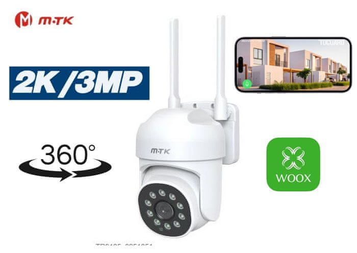 MTK predstavlja svojo napredno stensko 360° vrtljivo kamero, ki združuje inovativno tehnologijo in vrhunsko kakovost. Kamera je opremljena z 2K in 3MP resolucijo ter IP65 standardom, kar zagotavlja kristalno čiste posnetke v vseh vremenskih pogojih. Povežite se s svojim domom ali pisarno kjerkoli in kadarkoli preko napredne Woox aplikacije!