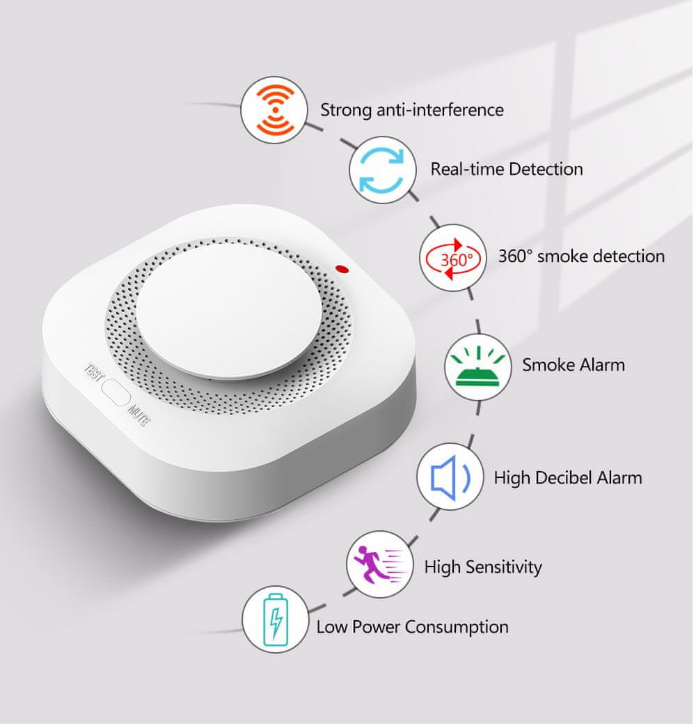OXE ZSP 05 je brezžični detektor dima za brezžični varnostni sistem OXE ZSK 1907SET EZS. OXE ZSP 05 je primeren za odkrivanje požara v stanovanjskih in poslovnih stavbah. GLAVNE FUNKCIJE Visoko občutljiva zaznamenjava dima