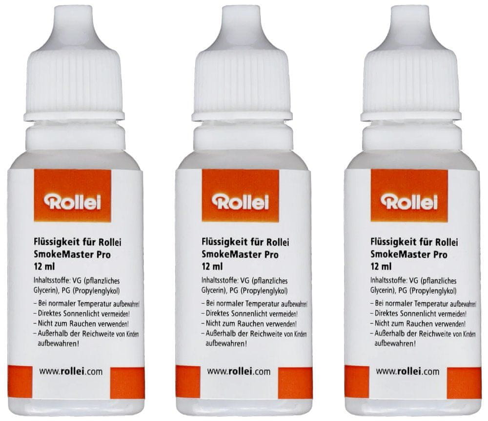 Nadomestni set treh stekleničk tekočine, namenjen za Rollei SmokeMaster Pro meglenko. Tekočina je sestavljena iz zelenjavnega glicerina (VG) in propilen glikola (PG), ki sta neškodljiva za ljudi in okolje.